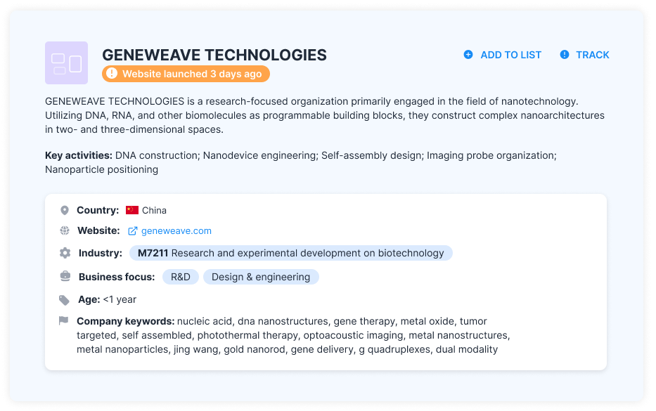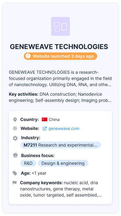 We scan business registers and 400 million web domains daily in search for new high-tech companies. Track innovators from the moment they go live.